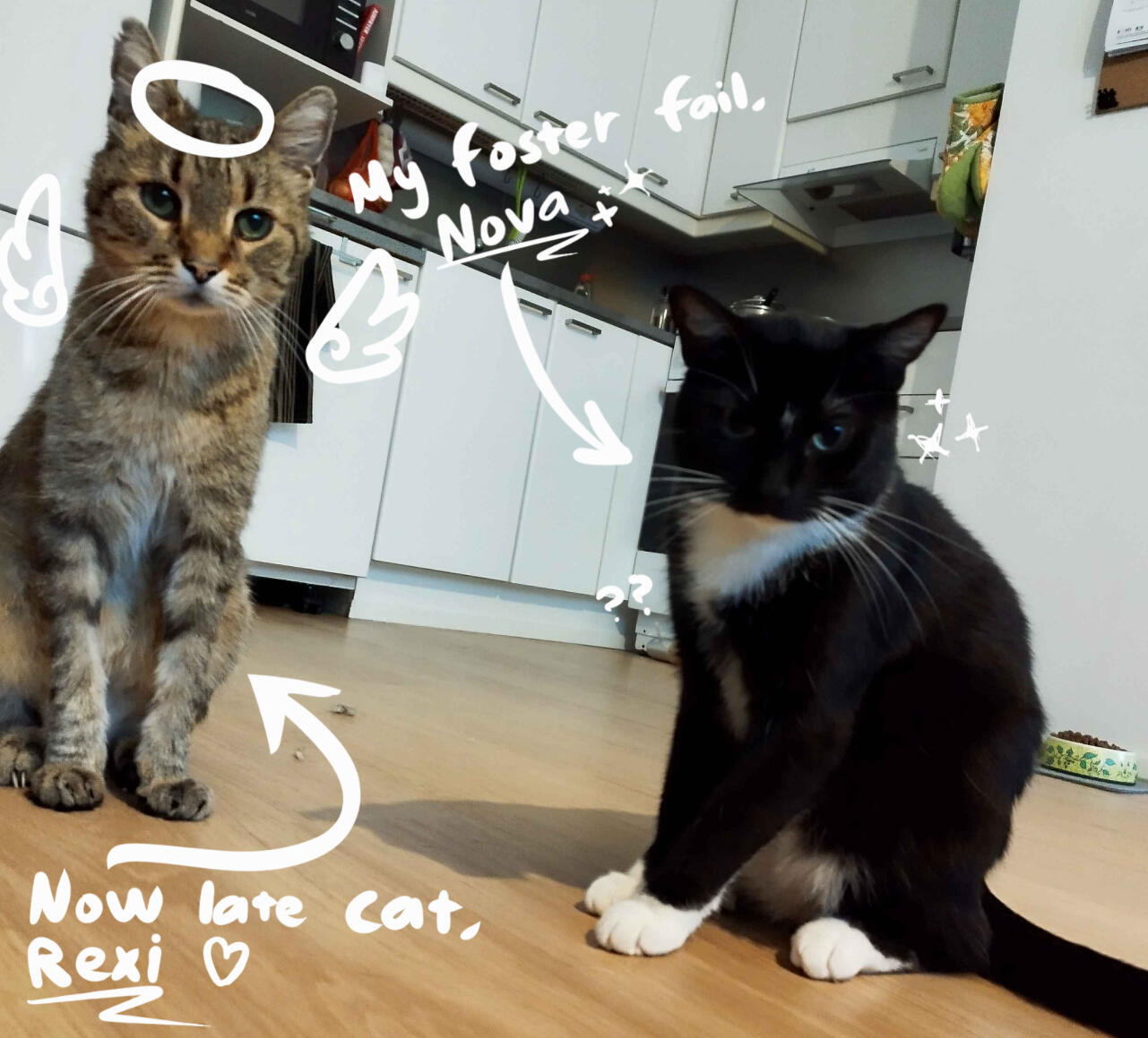 I'm a 21 yr old dude from Finland. making art and fursuits are some of my biggest passions! Along with fursuit making, I volunteer at a local cat shelter.Animals, especially cats, are close to my heart, and throughout my life I've owned three cats and around six frogs. My family also had three dogs, horses and fish, so since I've always been surrounded by animals, it's really no surprise that I ended up mainly doing art of animals. Nowadays I've branched out to draw humans as well though.I'd like to own more pets, l've been dreaming of a ball python....A parrot of the conure kind would be very cool too...But maybe those will stay as dreams, who knows.Currently I own two cats, allow me to introduce them!